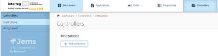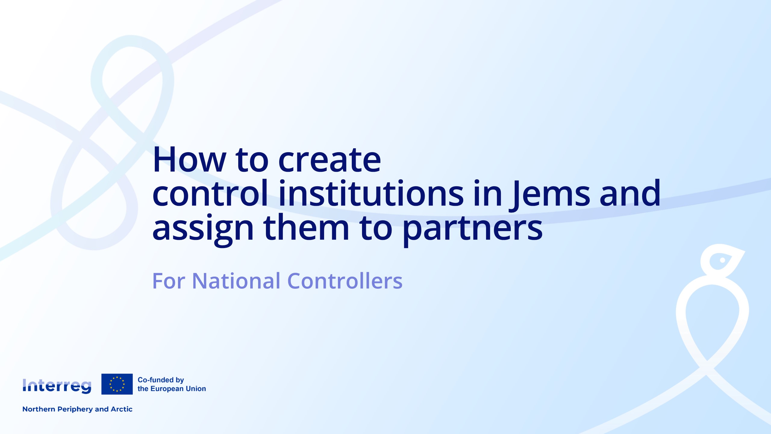 Watch this short tutorial about how to create a Control Institution in Jems, add controllers and then assign it to a project partner. or follow the detailed steps further down.