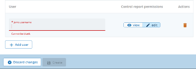 When defining the access rights by selecting “view” or “edit” for the control report permissions, consider that controllers filling in the control checklist and report need to have “edit” rights.