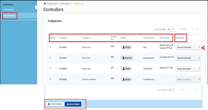 Select “Assignment” in the left menu to get to the section for assigning a control body (referred to as institution in Jems) to a beneficiary (project partner).