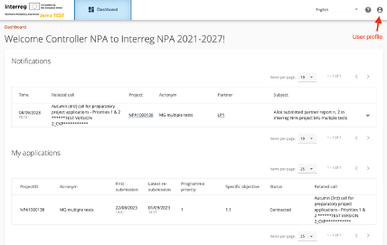 At login, the controller will land on the Dashboard, where two sections are available: Notifications and My Applications.