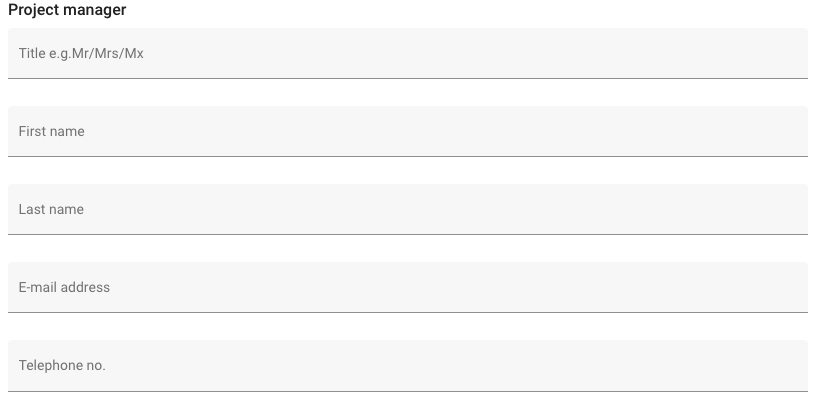 Select the text fields to complete the contact information of the Project manager, Financial manager and Communication manager.