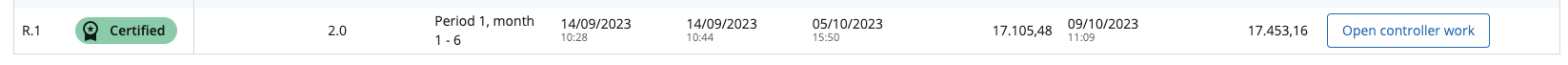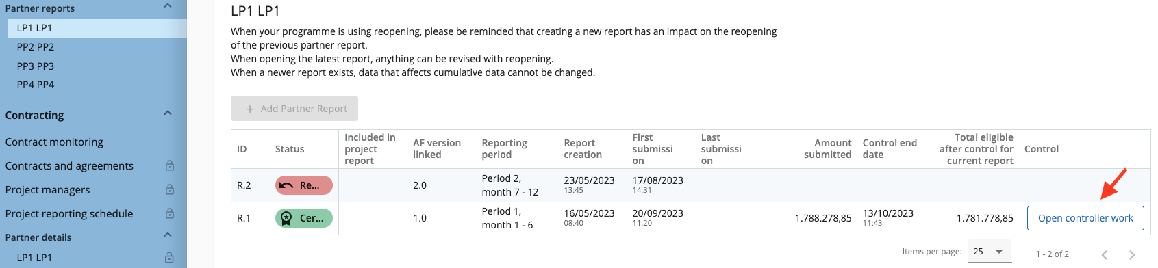 The list of partner reports will appear on the screen.Scroll to the right until the button “Open controller work” appears.