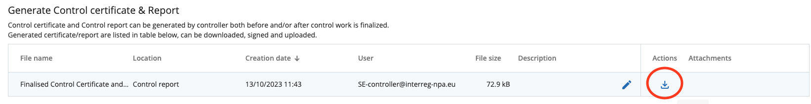 "Finalised Control Certificate and Control Report 1 - NPA0X00XXX - LP1 - R1.pdf”Click on the download icon to view or save a copy locally.