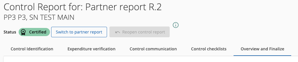 Once control is finalised, all tabs of the control report become visible (read-only) to all users who have access to the partner report. The work done during control is locked, but users can still upload documents in the Control communication tab.
