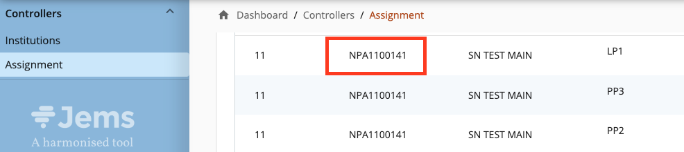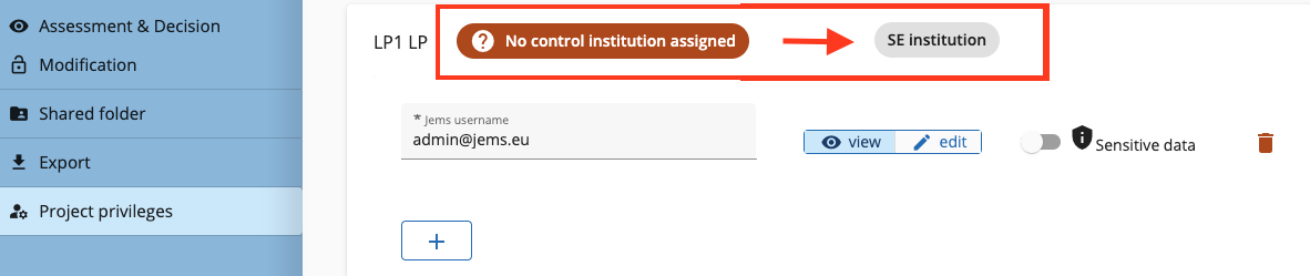 When a controller is assigned to a partner, this appears in the Project Privileges section in Jems.