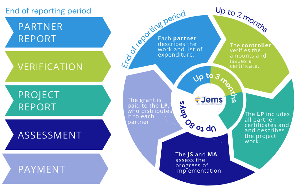 A Partner report contains both activity and financial information and is necessary to verify individual partner organisation’s expenditure. Partners are responsible to complete and submit their partner reports to the Controller in Jems.