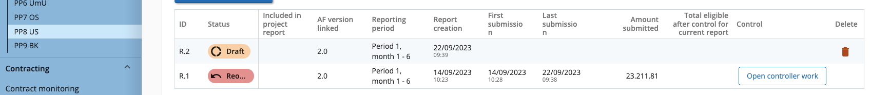A partner report in status Submitted or Control ongoing can be reopened only by the Programme Administration or by the controller.