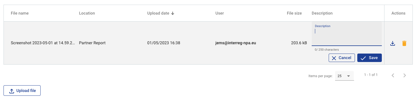 Since it is not always possible to add descriptions to the uploaded files in the dedicated tab, partners are encouraged to add descriptions to all files in this section.