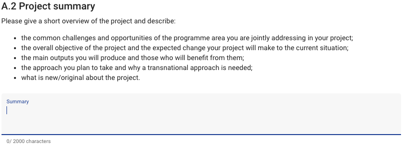 In this section, you are requested to provide general information about the project. For a more detailed guidance about content development, please consult the Application Form Offline Sample.