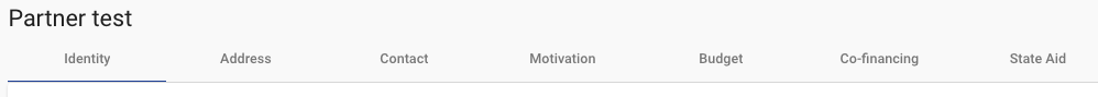 Once a partner is added, the following tabs will be activated and have to be completed for each partner: