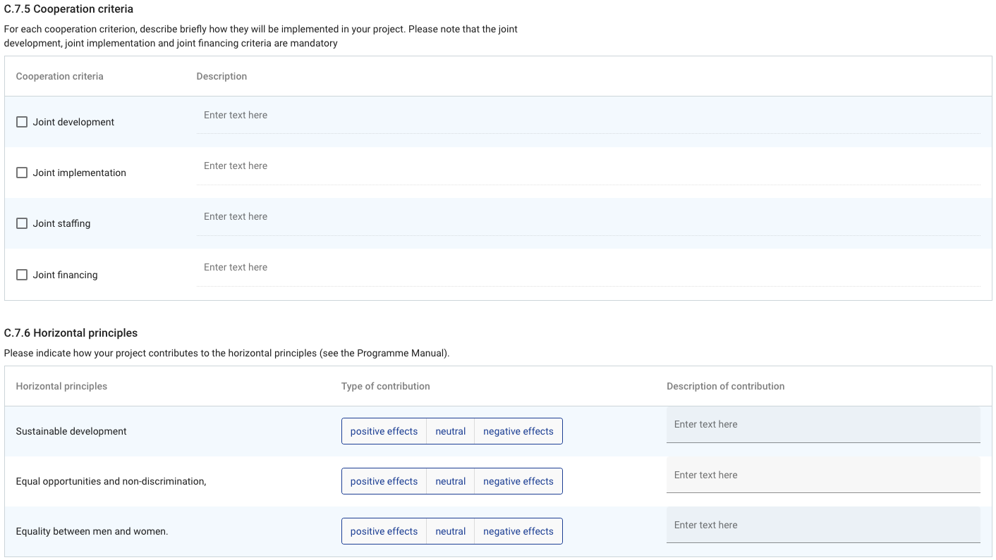 Details and guidance about the content of this section can be found in the Programme Manual, in the AF Offline template as well as in Jems.