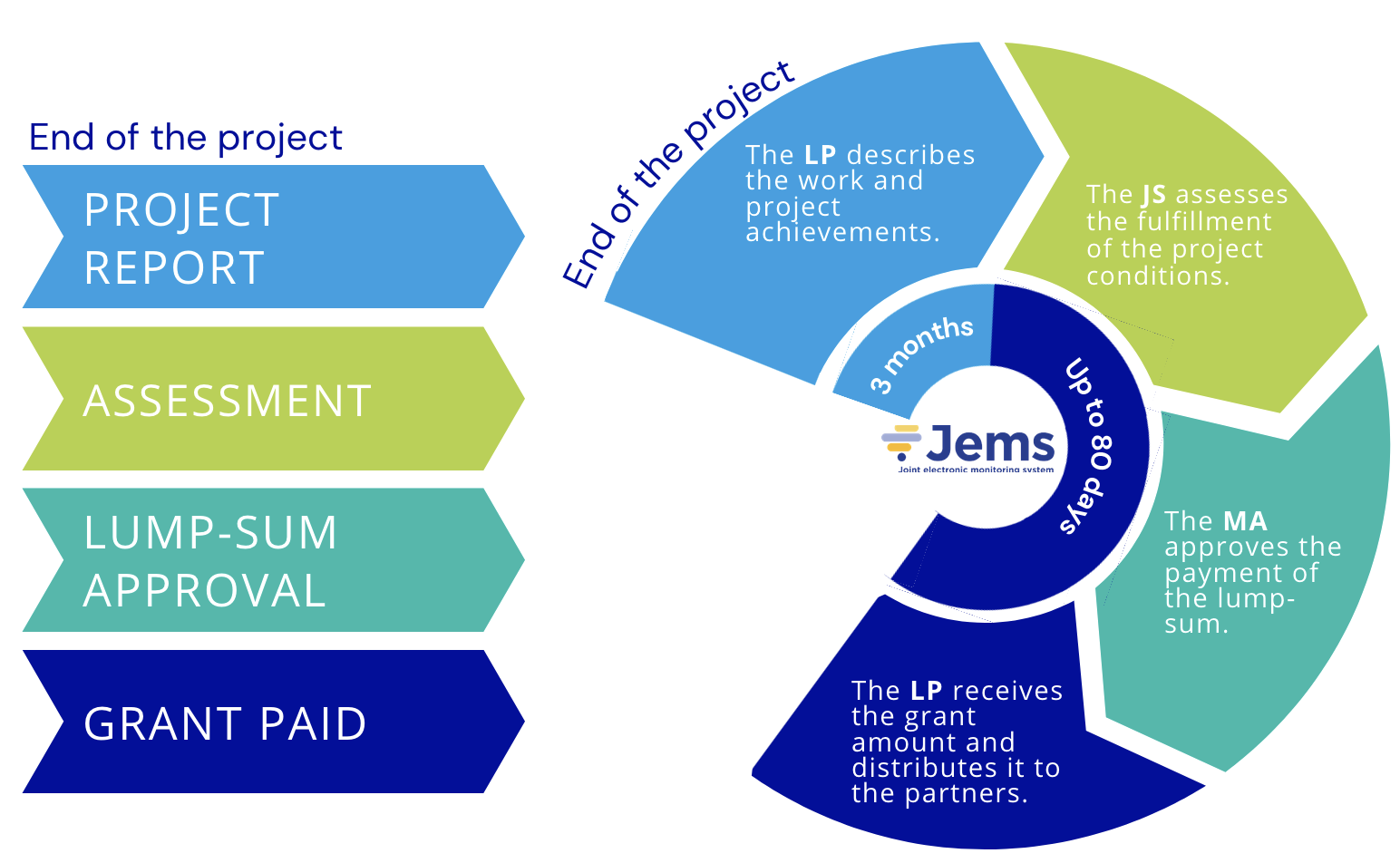 The reporting cycle of these types of projects is shorter and simpler. Lump-sum projects report only once at the end of the project. Upon approval of the report, the programme administration will approve and fast-track the payment of the lump-sum.