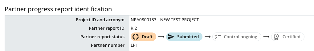 Once submitted, the status of the report changes to Submitted. After submission, the partner report is locked and the control work can be started.